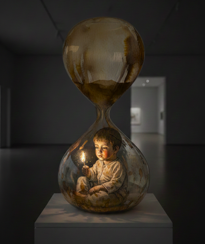Technique: Ink on paper, 2025 AI-assisted digital modeling and three-dimensional visualization Witnesses of Time focuses on children as...